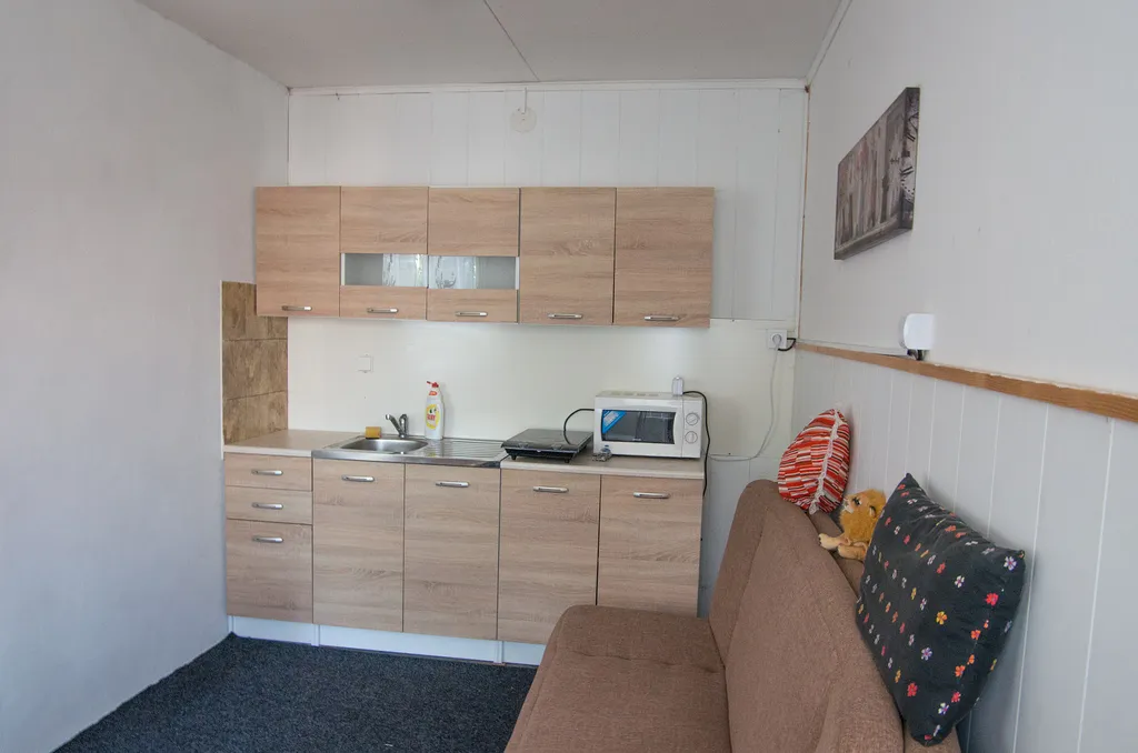 V areálu je i další stavební objekt typu okal – buňky. Tento objekt má jeden apartmán se 4 lůžky se samostatnou kuchyňkou a koupelnou a další 2 samostatné místnosti po 4 lůžkách. Vytápění je přímotopy.