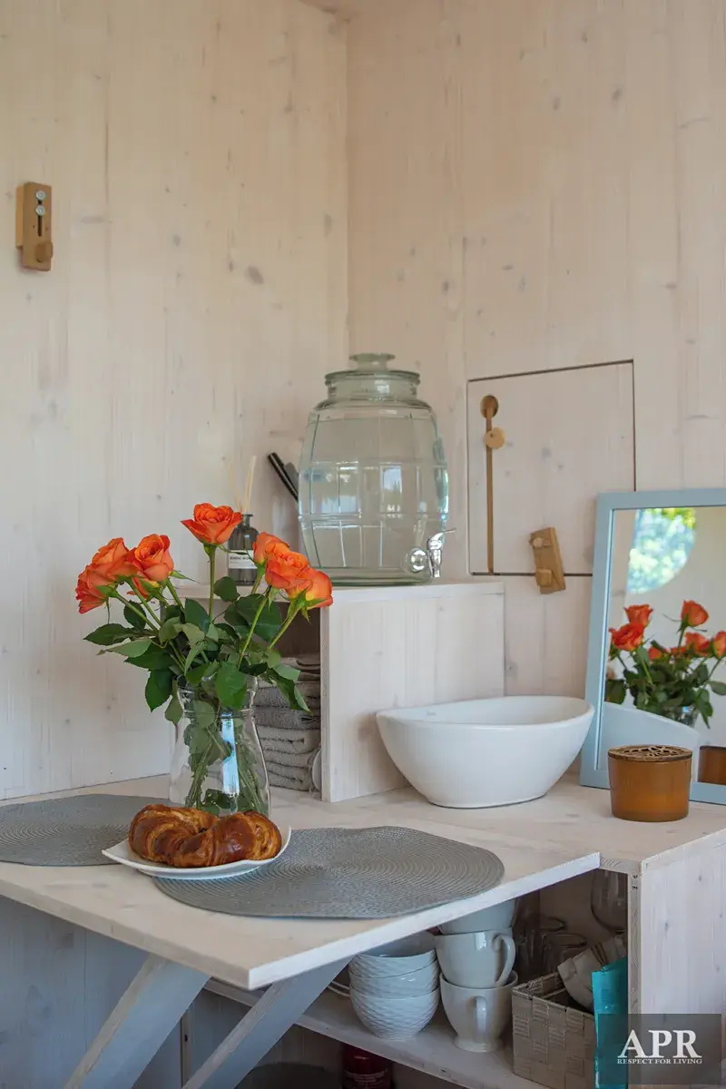 Domek je novostavba s promyšleným interiérem, kvalitním zpracováním a plně vybavený – včetně manželské postele, nábytku, nádobí, solární sprchy či 12V rychlovarné konvice. Elektřinu zajišťuje solární panel s baterií, vytápění plynová kamna s dvouplášťovým komínem na PB. Toaleta je řešena ekologicky. Vše je součástí kupní ceny.