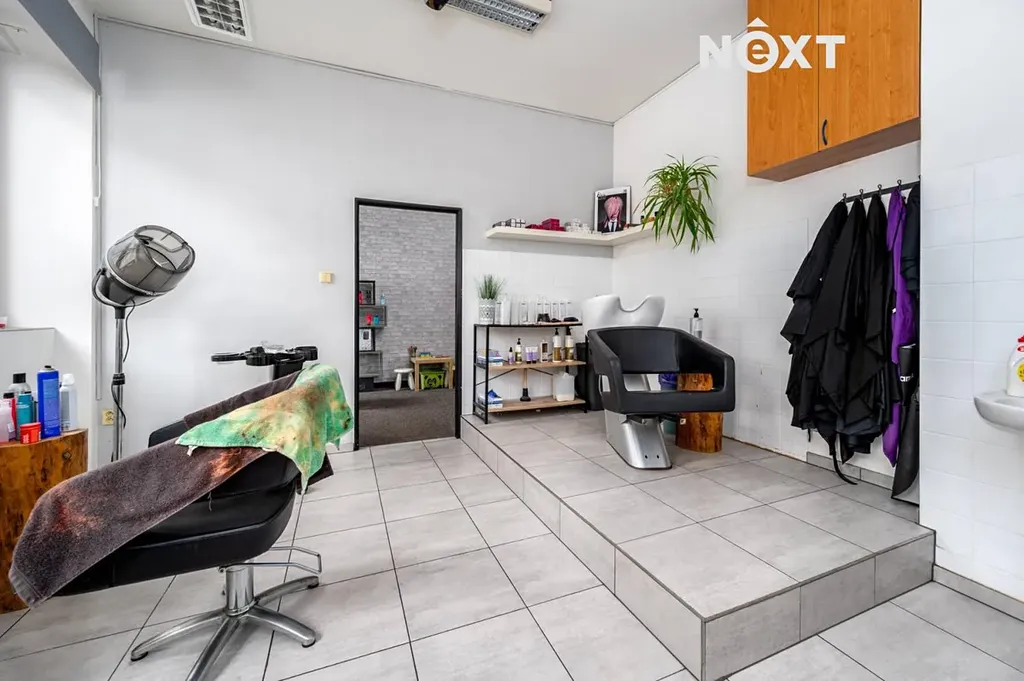Ve druhém nadzemním podlaží za schodištěm vpravo máme Autoškolu, která je rozložena do dvou samostatných učeben. Ve střední části se nachází Kadeřnické studio a po levé straně Kosmetický salon. Tyto provozovny jsou také uspořádány do dvou samostatných pracoven. Nezbytným doplňkem tohoto prostoru je sociální zařízení.