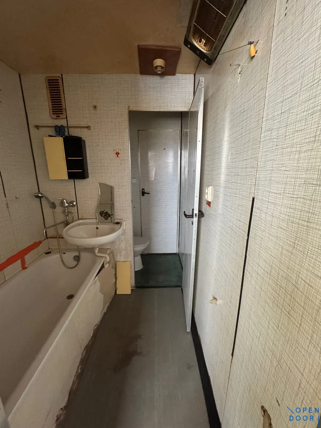 Byt je v původním, ale zachovalém a funkčním stavu, nabízí tři samostatné místnosti, zasklený balkon a kuchyň, vč. kuchyňské linky s plynovým sporákem. V koupelně je vana, umyvadlo a toaleta.