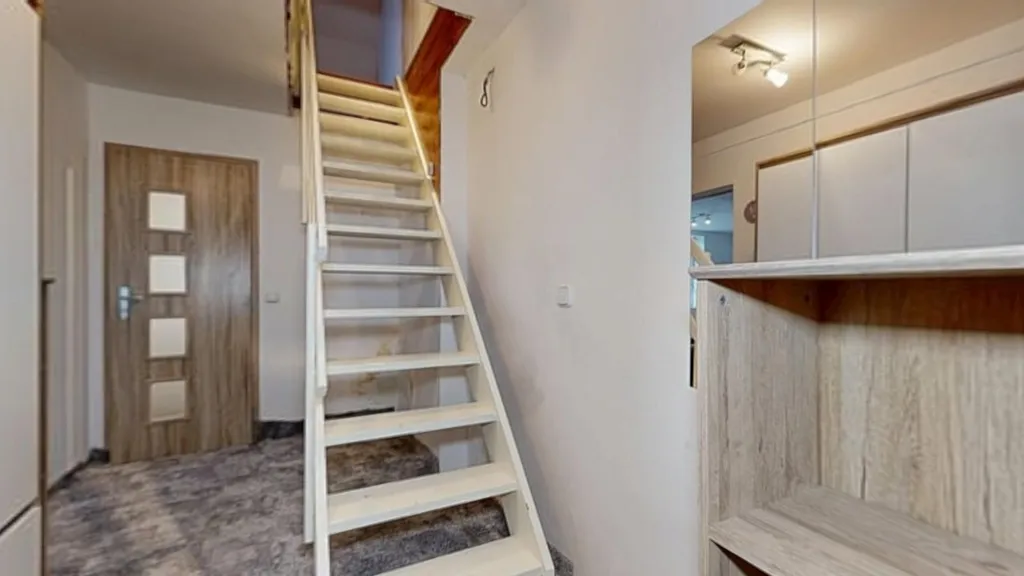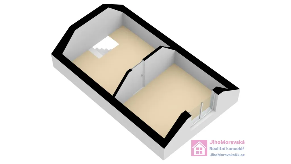 přízemí – předsíň, chodba se schodištěm do patra, koupelna s toaletou, obývací pokoj s kuchyňským koutem.