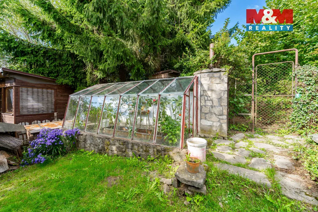 Nemovitost je ve velmi dobrém stavu a nabízí dvě místnosti rozložené do dvou nadzemních podlaží, přičemž k dispozici je také jedno podzemní podlaží. V zadní části zahrady stojí skleník se zděnými základy propojený s kamennou udírnou, na které navazuje zpevněná plocha s žulovým stolem a ohniště pro oblíbené opékání a grilování. Uprostřed pozemku protéká přírodní potůček s malým „vodopádem“. Na zahradě jsou nejen krásné jehličnany a ovocné stromy nesoucí pěknou úrodu, ale i několik záhonků a políčko na brambory. U chaty je vyvýšená terasa s kamennými schody a malým jezírkem s lekníny. Chatu se zadní částí zahrady propojují zpevněné chodníčky, v některých místech i s kamennými obrubníky.