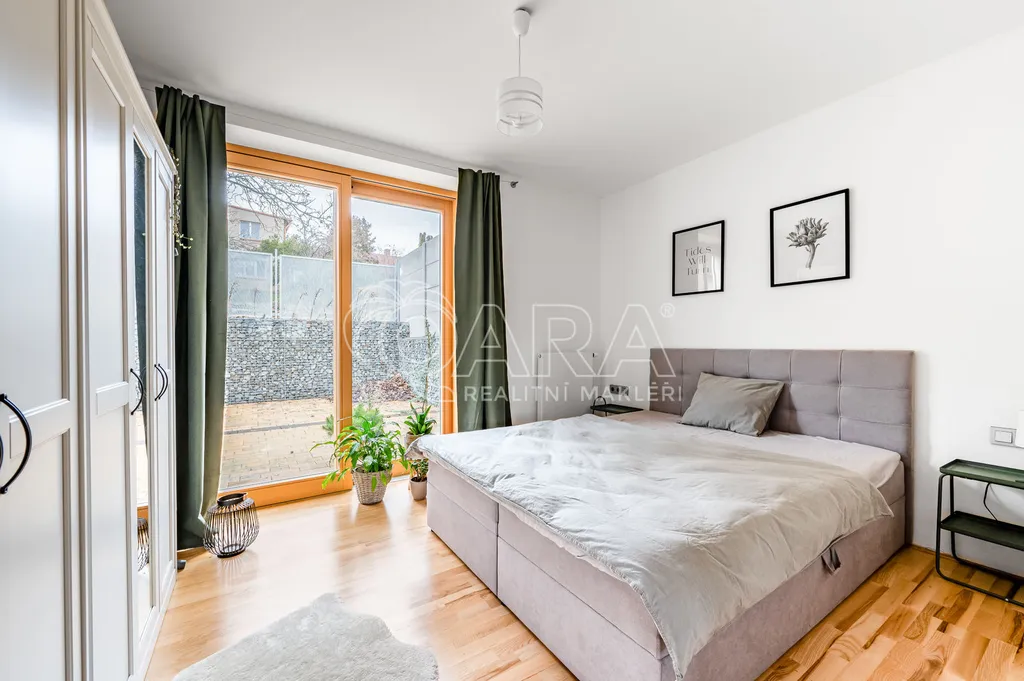 Součástí nemovitosti je také druhá samostatná jednotka s vlastním vstupem ze zahrady. Dispozice 2kk nabízí obývací pokoj s kuchyňským koutem, samostatný pokoj s přímým vstupem na vlastní terasu, koupelnu a oddělenou toaletu. Jednotka je ideální např. pro management, zázemí firmy či samostatnou kancelář.