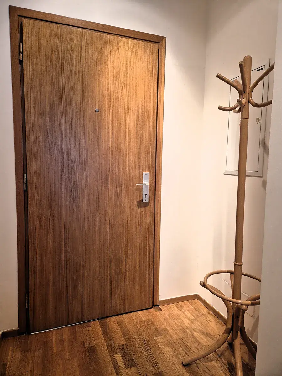 V předsíni je věšák na kabáty.