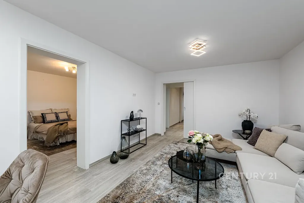 Byt je prostorný, disponuje celkem třemi pokoji, což umožňuje komfortní bydlení pro rodinu nebo jako investice k pronajímání. Místnosti jsou veliké (obývací pokoj ložnice s výstupem na balkón, velký prostorný pokoj a kuchyně, která je vybavena (troubou, plynovým sporákem, myčkou nádobí a kombinovanou lednicí s mrazákem.