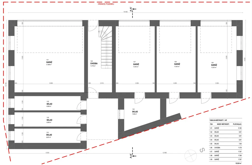 V přízemí jsou navrženy čtyři garáže a čtyři skladové prostory. Můžeš je pronajímat, využít pro podnikání, nebo si vytvořit zázemí, které ti bude dlouhodobě generovat pravidelný příjem.