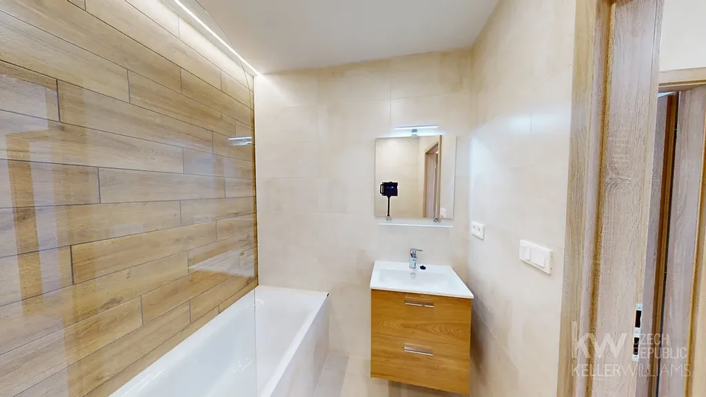 Byt prošel kompletní rekonstrukcí (nové podlahy, koupelna, kuchyň, rozvody, omítky, dveře).