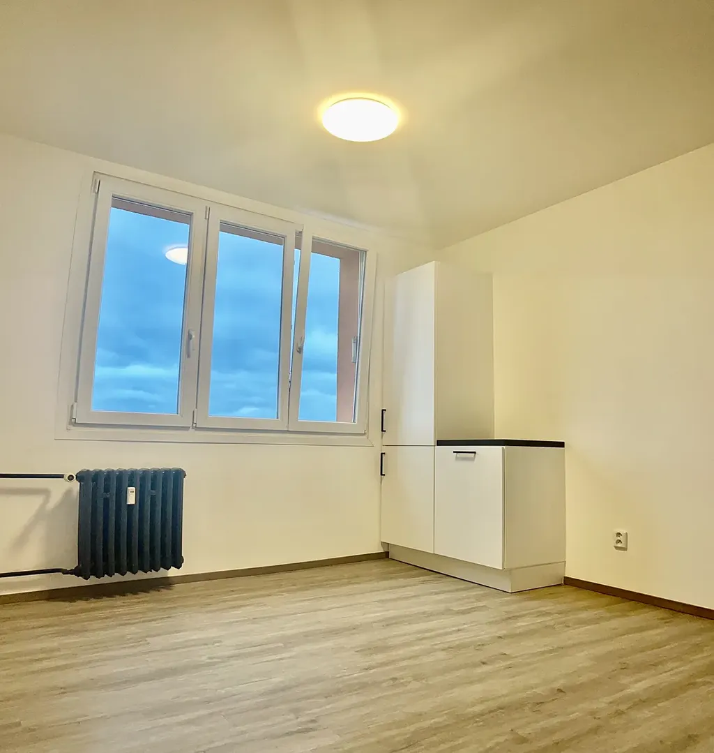 Dovolujeme si Vám nabídnout pronájem v bytě 1+1 o velikosti 35,69 m² po kompletní nové, velmi povedené rekonstrukci. Byt je situován ve 3.NP panelového domu. Zahrnuje samostatný pokoj, kuchyň, malebnou předsíň a koupelnu s toaletou. Kuchyň je vybavena novou kuchyňskou linkou, ledničkou, digestoří, myčkou a elektrickou troubou se sklokeramickou varnou deskou.