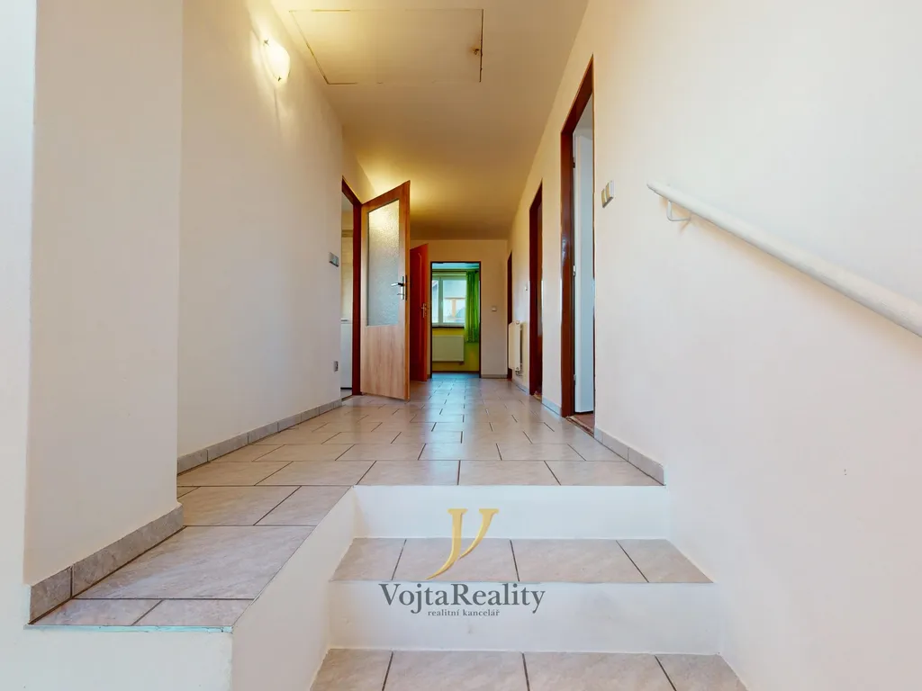 V horním patře jsou situovány čtyři samostatné neprůchozí pokoje, které lze využít jako ložnice, dětské pokoje či pracovnu. Komfortní zázemí doplňuje velká koupelna s vanou, sprchovým koutem a dvěma umyvadly, doplněná o další samostatné WC. Pro uložení sezónních věcí slouží zateplený půdní prostor přístupný nad obytnou částí.