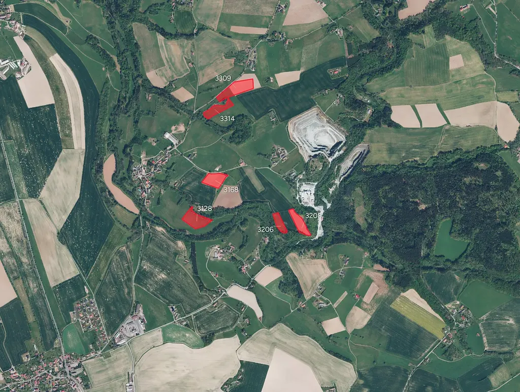 Celková výměra všech pozemků činí 70 085 m², z toho: