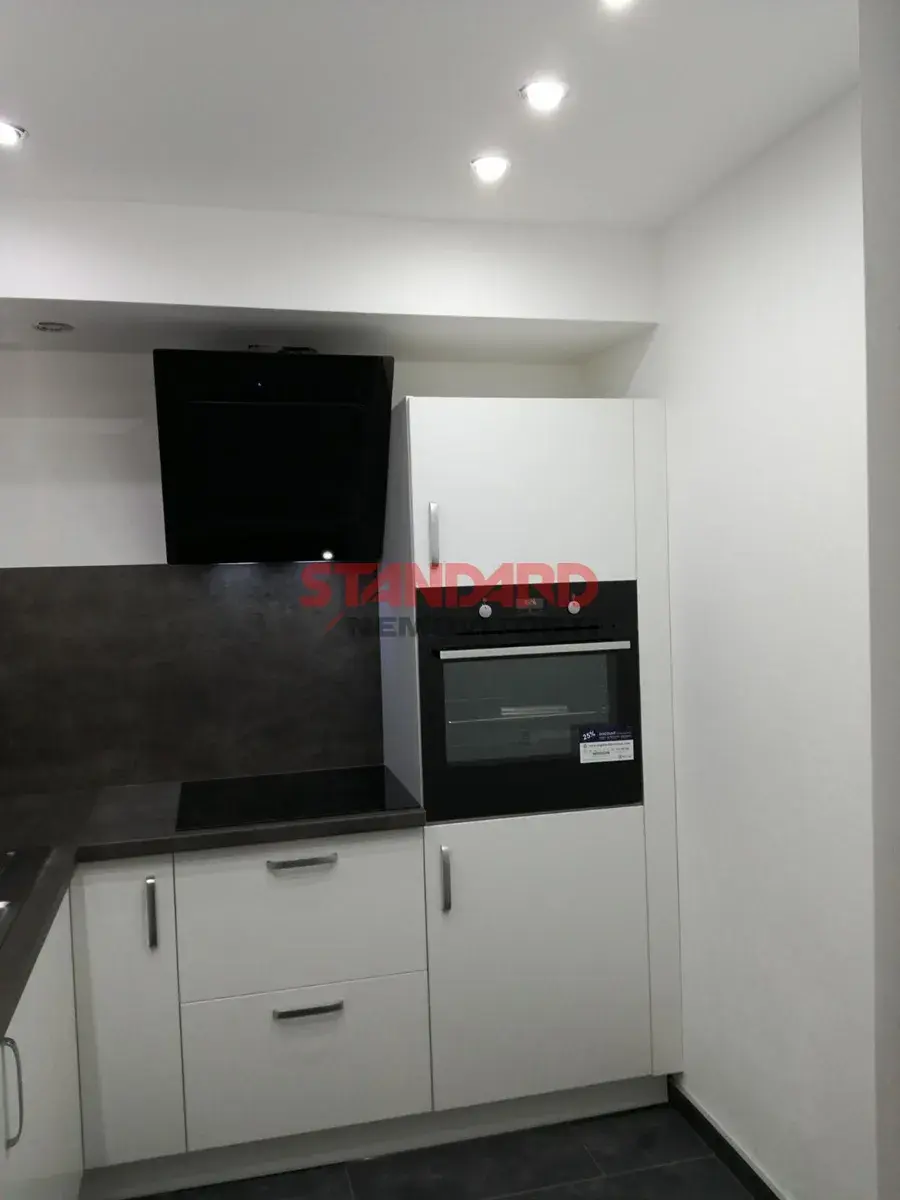 Obývací pokoj je propojen s kuchyňským koutem, ložnice má samostatný vstup z předsíně. Kuchyně je vybavena moderní kuchyňskou linkou s myčkou nádobí, pečicí troubou a sklokeramickou varnou deskou.