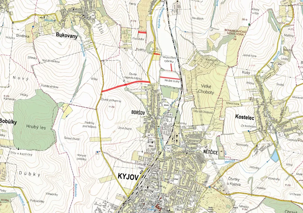 V okrese Hodonín, v katastrálních územích Bohuslavice u Kyjova a Boršov u Kyjova, nabízíme k prodeji soubor zemědělských pozemků ve výlučném vlastnictví.