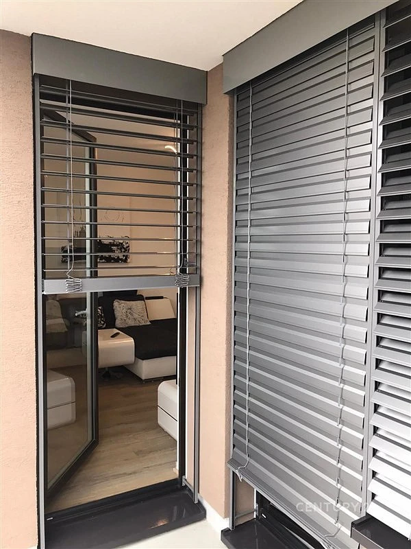 ? Na všech oknech v tomto bytě instalovány venkovní žaluzie na elektrické ovládání, které funguje i přes aplikaci v mobilním telefonu.