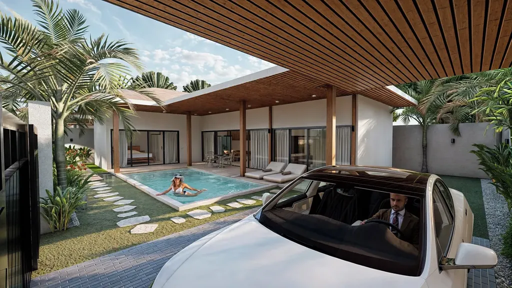 Soukromý bazén a parkovací místo dotváří komfortní a bezstarostný životní styl, který si budete moci naplno užívat.