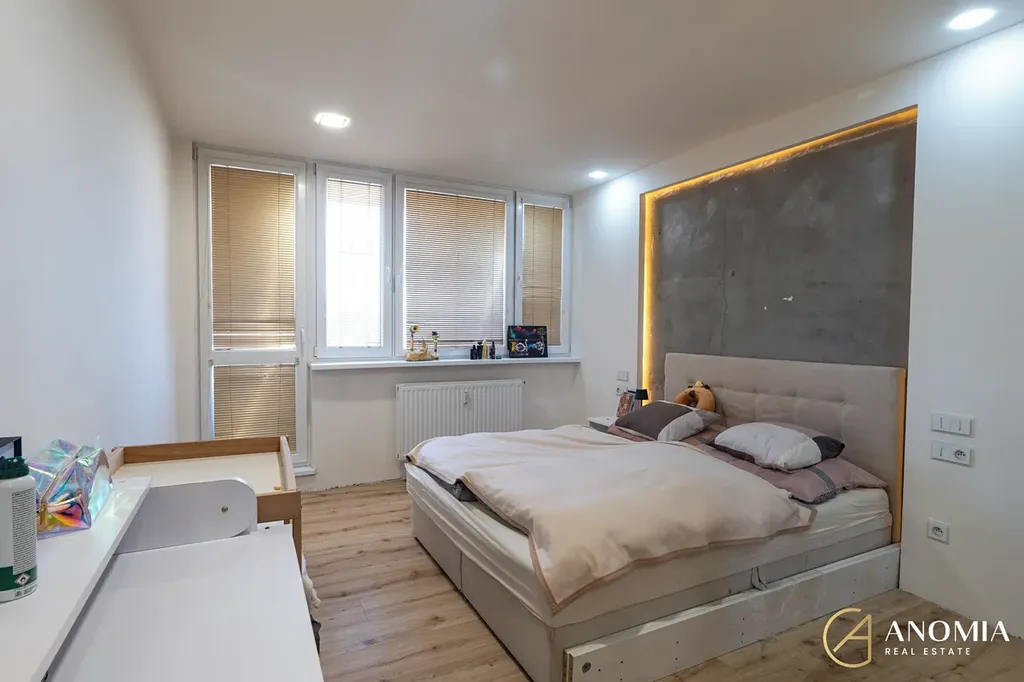 Velkou výhodou je, že zbývá dokončit už jen koupelnu, což novým majitelům dává skvělou příležitost vytvořit si ji přesně podle svého vkusu a potřeb, a to s minimálními náklady oproti kompletní rekonstrukci celého bytu. Stejně tak lze dle vlastních preferencí vybrat zárubně a dveře do dvou pokojů a koupelny, takže finální podoba bytu může být plně ve vašem stylu a byt může být hotov do páer týdnů od nastěhování. Z ložnice je navíc přímý vstup na lodžii, ideální na ranní kávu nebo chvíli klidu.