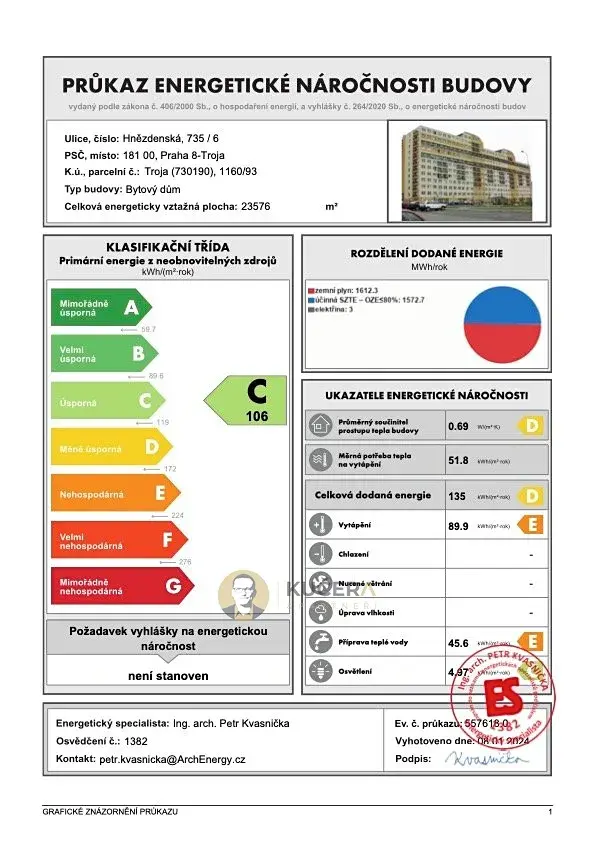 | Ukazatel energetické náročnosti | 106 kWh/m2 za rok |