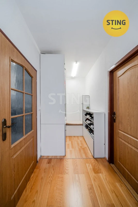 Byt je situován v revitalizovaném panelovém domě s výtahem stojícím přímo na patře. Nachází se v klidné části s jižním výhledem do volného prostoru, který zajišťuje naprosté soukromí a dostatek přirozeného světla po celý den. Dispozice bytu je velmi dobře řešená – všechny místnosti jsou neprůchozí, vzdušné a plnohodnotné. Částečné rekonstrukce proběhla v roce 2010. Kuchyňská linka byla vyrobena na míru spolu s jídelním stolem, které nabízí příjemné posezení. Velkým benefitem je samostatná šatna, která výrazně rozšiřuje úložné možnosti. Z obývacího pokoje je vstup na zasklenou lodžii, ideální pro relaxaci. Orientace bytu na dvě světové strany zajišťuje příjemné klima během celého dne, přičemž jižní pokoj je navíc vybaven venkovní roletou.