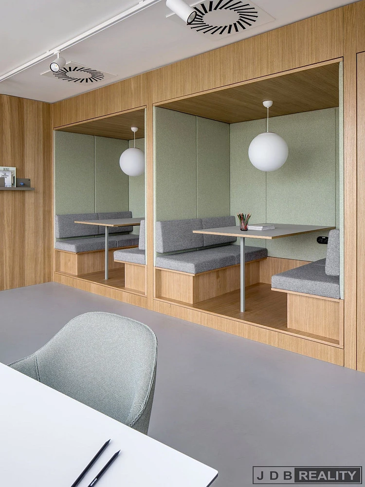 - Společné prostory, business lounge, relaxační zóny a plně vybavené kuchyňky