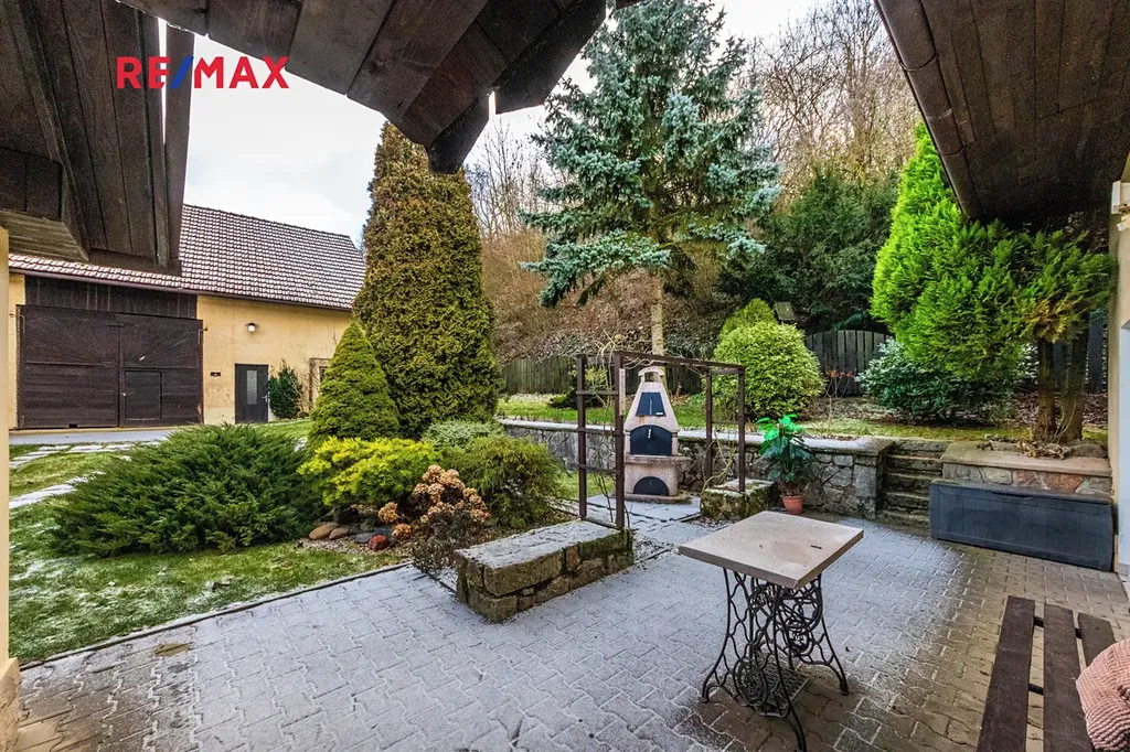 K nemovitosti dále náleží také stodola, která může sloužit k uskladnění, přestavbě či jako kryté stání pro vozidla. Dále samostatná garáž a dílna, která potěší každého kutila nebo může posloužit k drobnému podnikání z domova. Zahrada u domu poskytuje příjemný prostor pro odpočinek, pěstování nebo jako zázemí pro děti. Kopaná studna s vodou vyplňuje zahradní prostor.