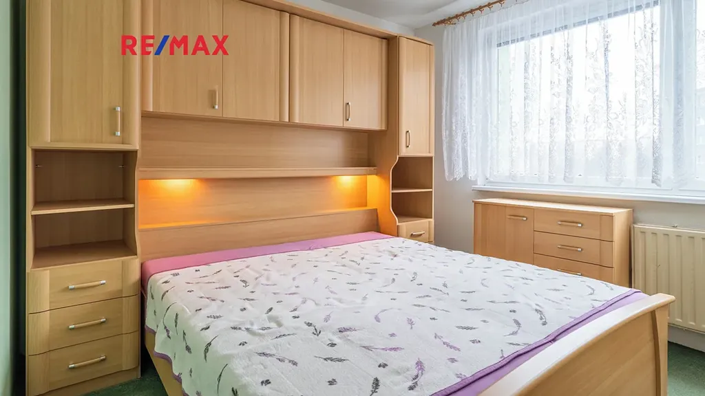 Byt je v osobním vlastnictví, je v udržovaném stavu a jeho velkým benefitem jsou zděná jádra v obou koupelnách. Má dlouhou vstupní chodbu s vestavěnými skříněmi, takže úložné prostory jsou vyřešené hned od prvního kroku. V klidové části bytu se nachází ložnice a první sociální zázemí, které je prakticky řešené s prostorem pro pračku a sušičku. Dále jsou zde další dva samostatné pokoje, ideální jako dětské pokoje, pracovna nebo pokoj pro hosty.