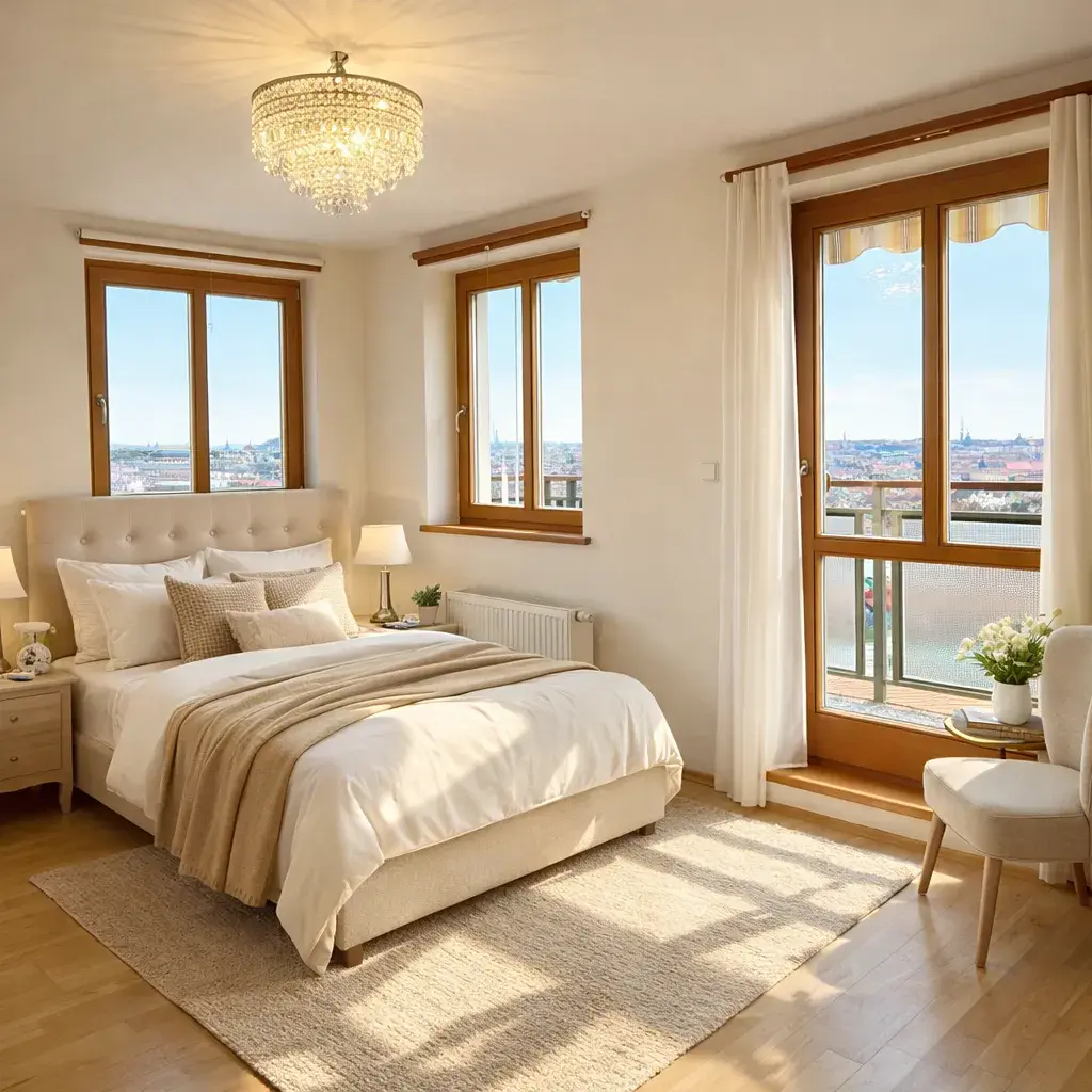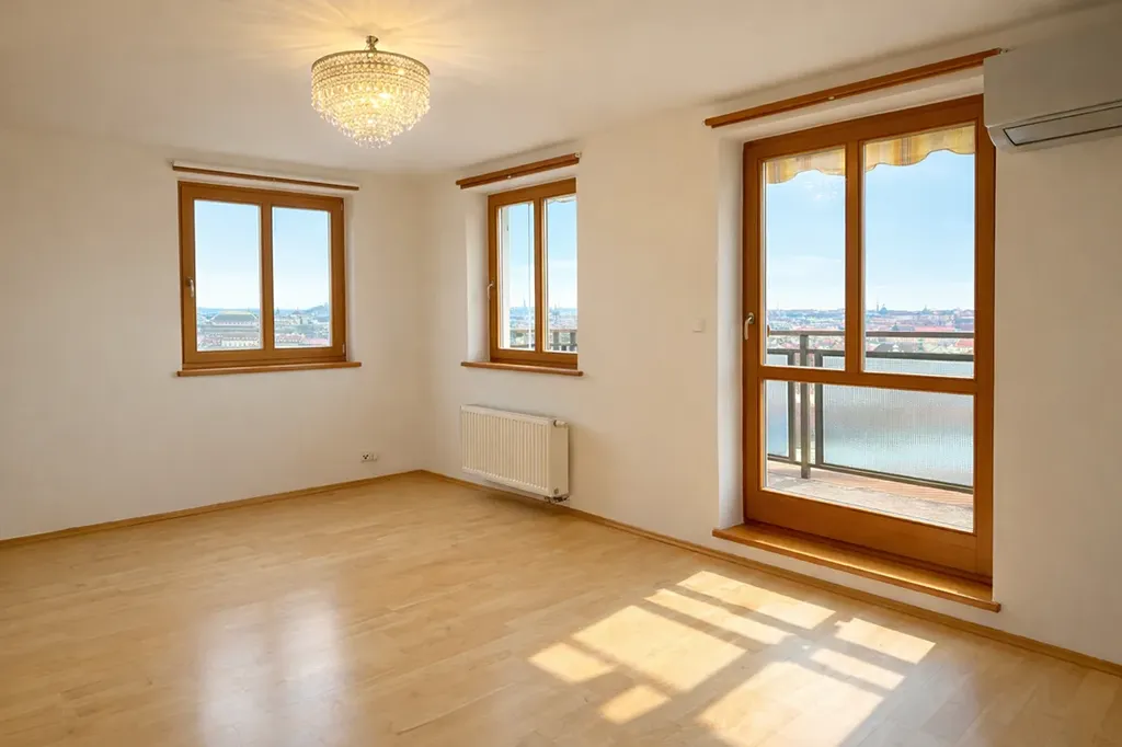 Jednou z hlavních předností bytu je úžasný výhled na nejkrásnější dominanty Prahy – doslova na ty nejlepší „perly“ hlavního města, který si můžete vychutnat jak z interiéru, tak z balkonu.