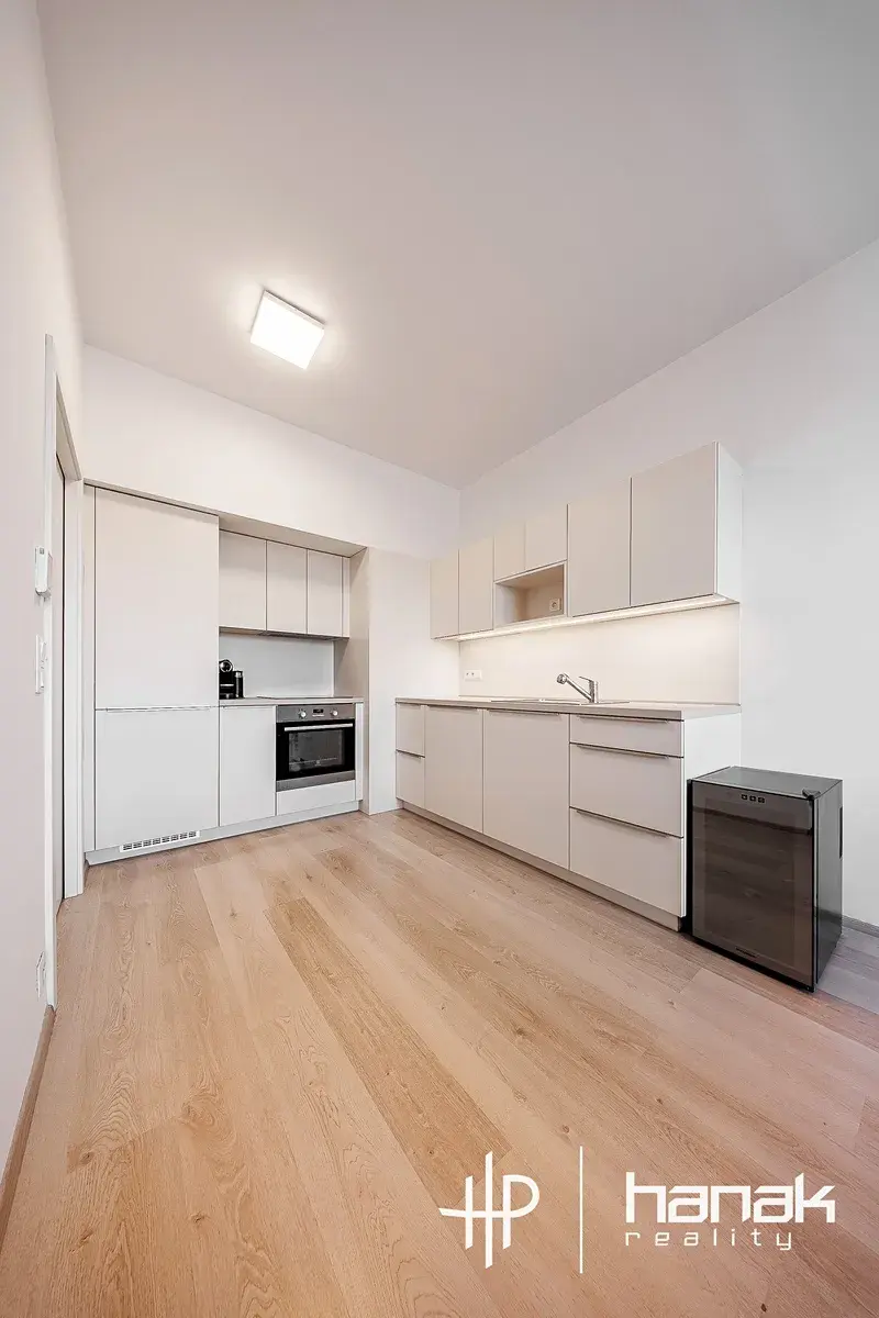 Předmětem nájmu je byt 2+kk o užitné ploše 43 m2 s prostornou terasou 18 m2, který se nachází v 6. nadzemním podlaží cihlové budovy z r. 2019.