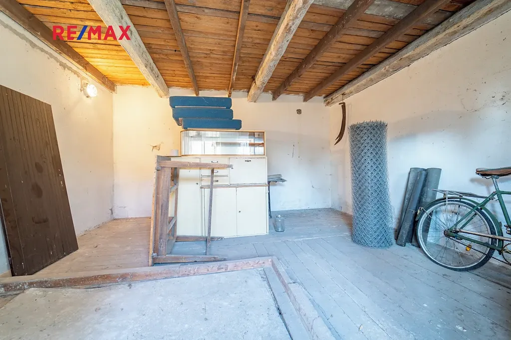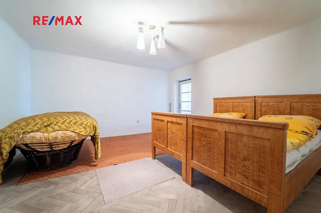 Dovoluji si Vám nabídnout prodej rodinného domu s rozlehlým pozemkem v Drahu (části obce Chleby), v okrese Nymburk. Rovinatý pozemek je částečně oplocen a má celkovou rozlohu 4446 m2. Samostatně stojící dům s kůlnami je z cihlového zdiva a má sedlovou střechu s pálenými taškami. Objekt je převážně v původním, avšak udržovaném stavu . Podlahy v obytné části tvoří dlažba a beton s PVC. Dispozice: předsíň, kuchyně, koupelna s vanou a toaletou, komora a dva pokoje. Na obytnou část navazují kůlny a garáž, kde lze vybudovat další obytné místnosti. Dům je částečně podsklepen. K vytápění slouží kamna na tuhá paliva v jedné místnosti. Ohřev vody zajišťuje elektrický bojler. Dům je napojen na veřejný vodovod a tlakovou kanalizaci. Na pozemku je též k dispozici kopaná studna. Pozemek tvoří několik samostatných parcel a má veliký potenciál využití.