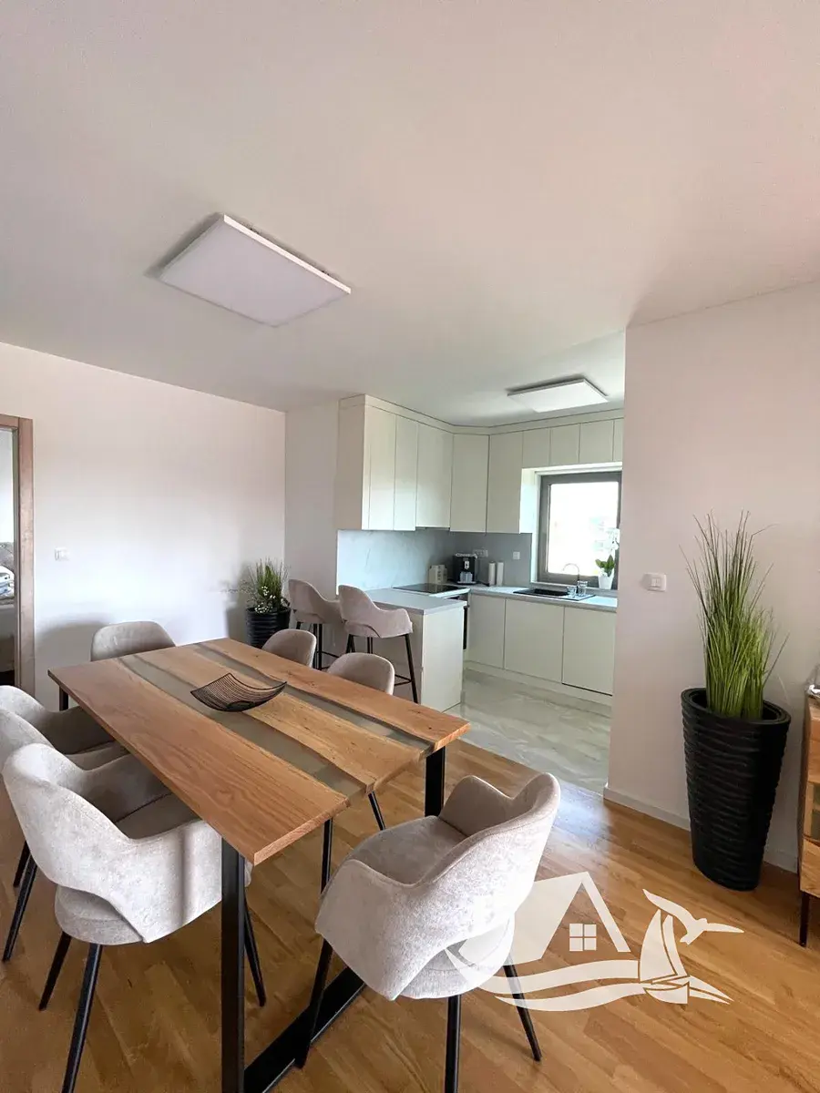 Ve vyhledávané části města Vodice nabízíme luxusně zařízený čtyřpokojový apartmán, který se nachází pouhých 700 metrů od pláže Hangar a přibližně 1300 metrů od centra. Nemovitost představuje ideální spojení komfortního rodinného bydlení a investičního potenciálu v jedné z nejpopulárnějších destinací chorvatského pobřeží.