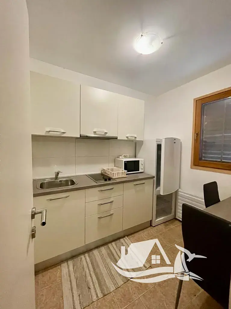 První patro o rozloze 110 m² je koncipováno jako tři studiové apartmány a jeden apartmán o přibližné ploše 35 m². Všechny jednotky jsou moderně zařízené, plně vybavené klimatizací a televizí a připravené k pokračování v pronájmu. Vyvýšené podkroví o ploše cca 100 m² je ve stavu Roh-Bau a nabízí další potenciál rozšíření obytného prostoru. Z terasy je panoramatický výhled na moře a ostrovy.