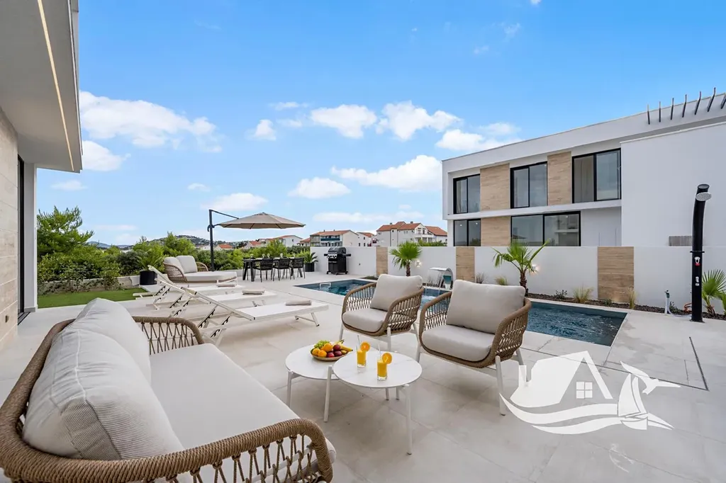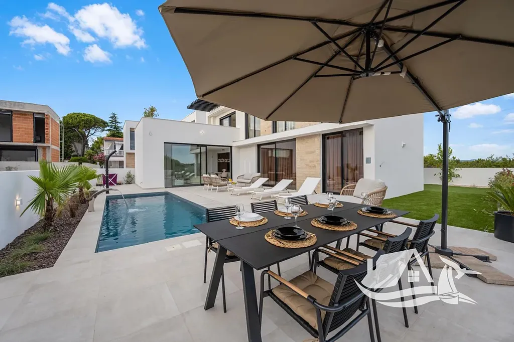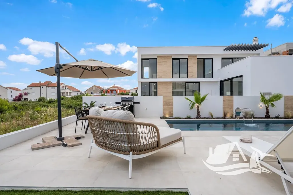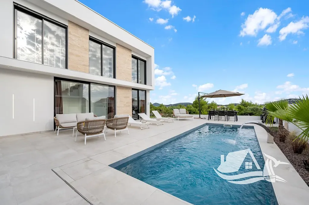 V klidné části malebného města Tribunj nabízíme luxusní, plně vybavenou vilu s moderním designem, která spojuje špičkovou architekturu, vysoký standard provedení a atraktivní polohu jen 600 metrů od pláže a 650 metrů od centra.