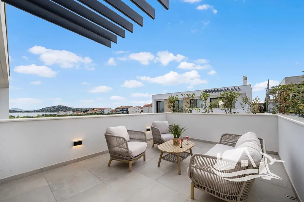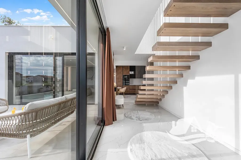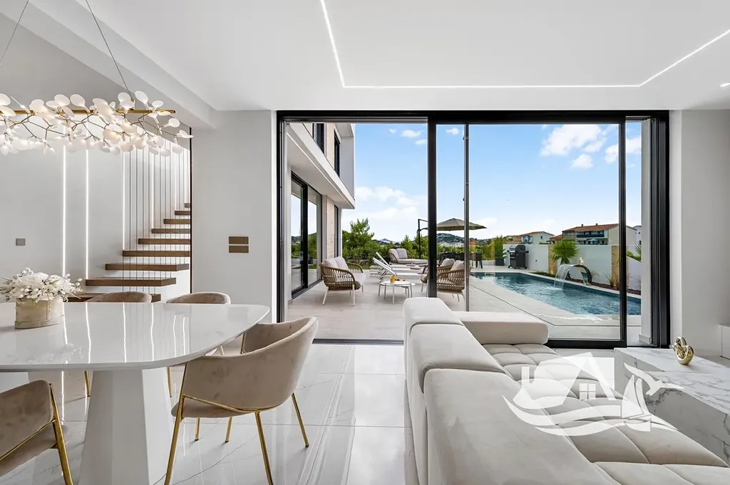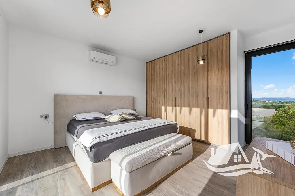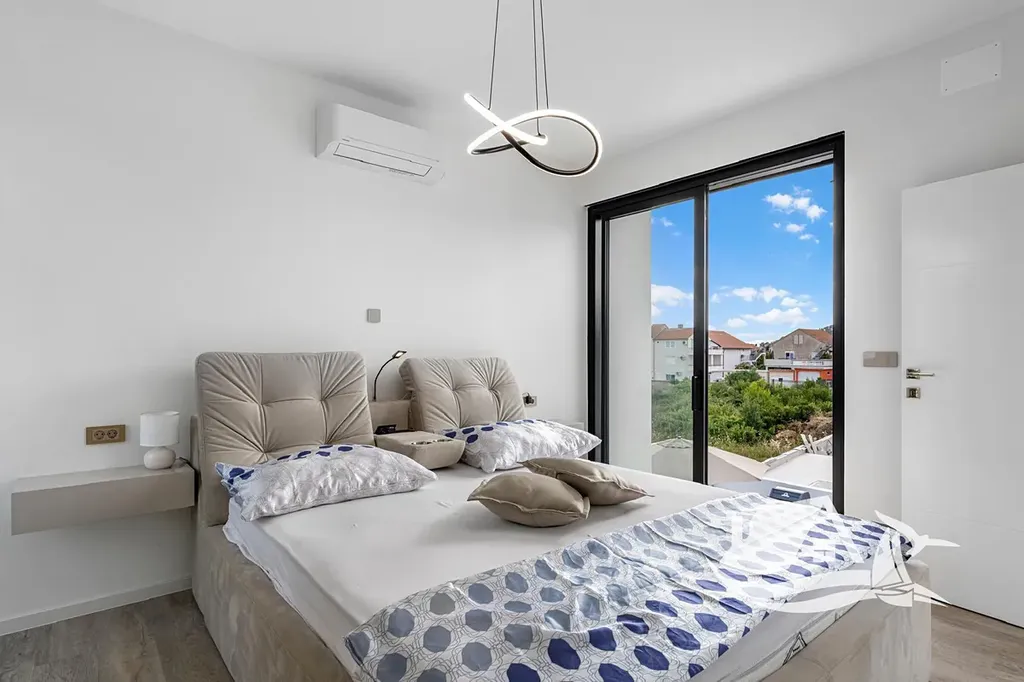 V klidné části malebného města Tribunj nabízíme luxusní, plně vybavenou vilu s moderním designem, která spojuje špičkovou architekturu, vysoký standard provedení a atraktivní polohu jen 600 metrů od pláže a 650 metrů od centra.