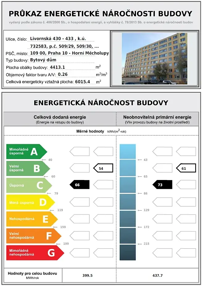 | Ukazatel energetické náročnosti | 66 kWh/m2 za rok |