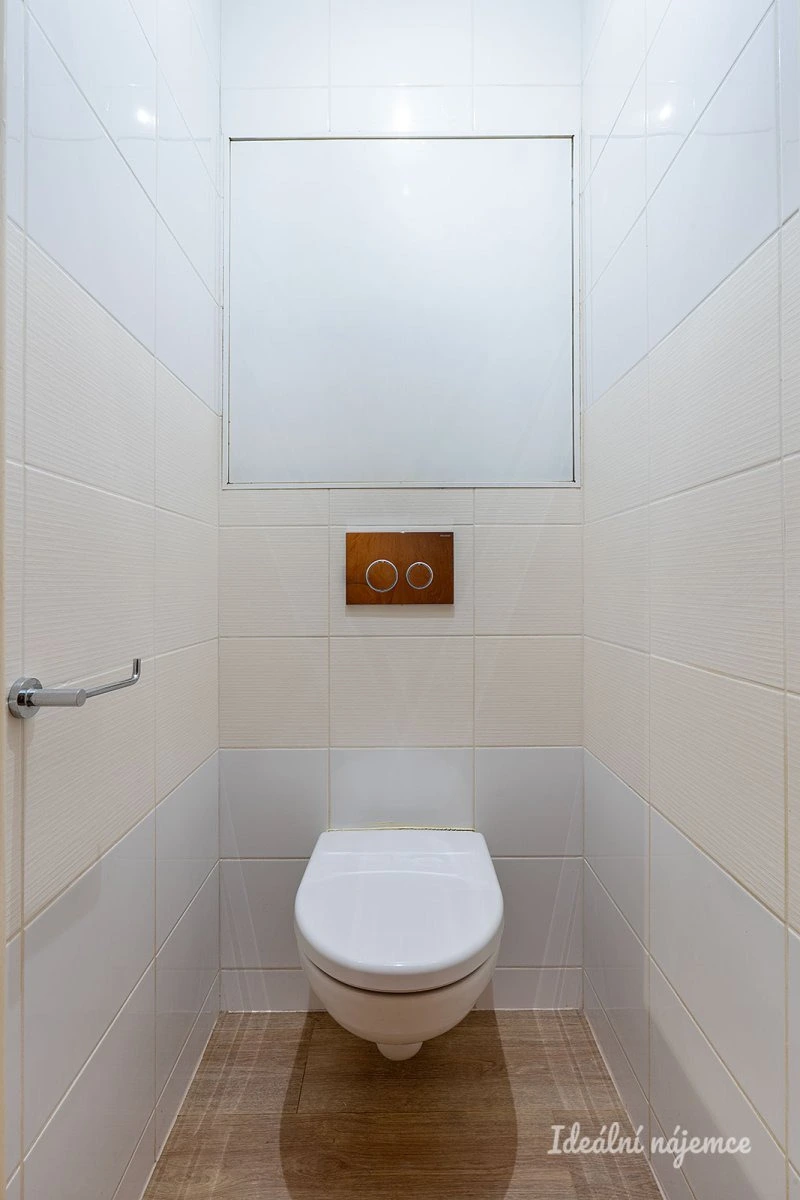V koupelně se nachází vana, umyvadlo se zrcadlem a koupelnová skříňka. Toaleta je umístěna samostatně. V předsíni je botník a vestavěná skříň s dostatkem úložného prostoru.
