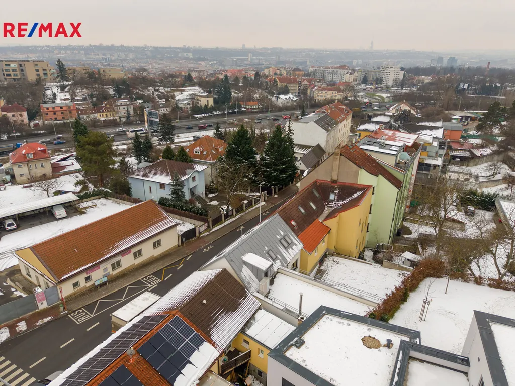 Velmi žádaná lokalita pár metrů od nájezdu na Libereckou ulici do centra Prahy. Náměstí Na Stráži a park Okrouhlík v dochozí vzdálenosti. Skvělé napojení MHD, autobus pár metrů od domu. Veškerá občanská vybavenost v dosahu.