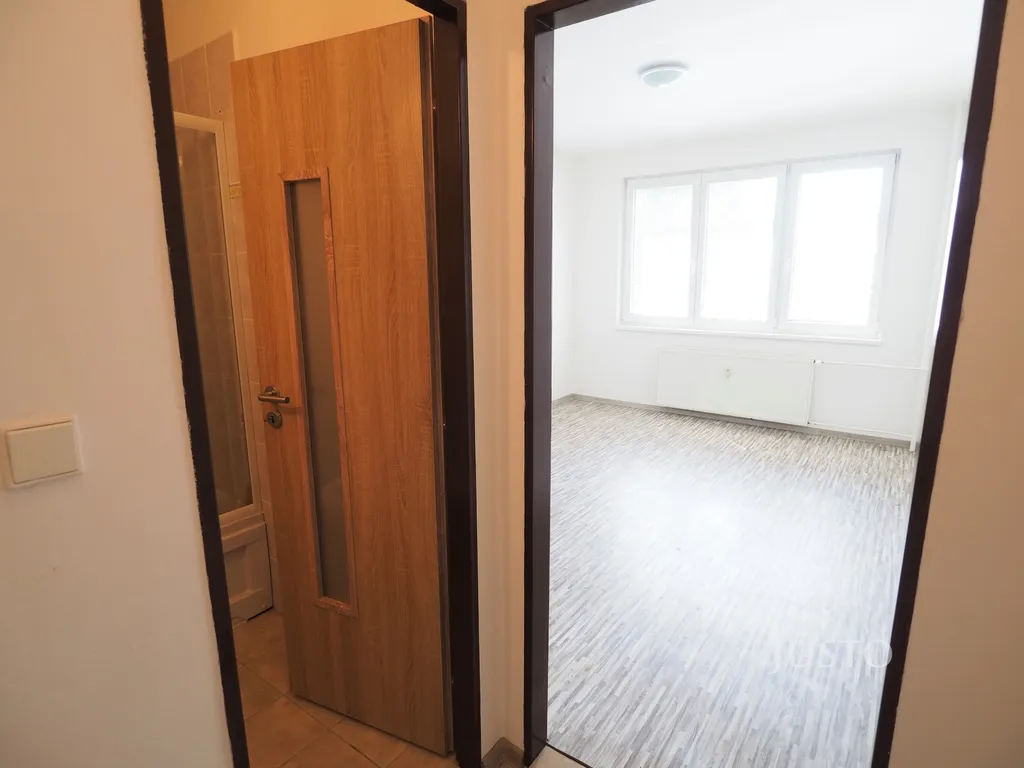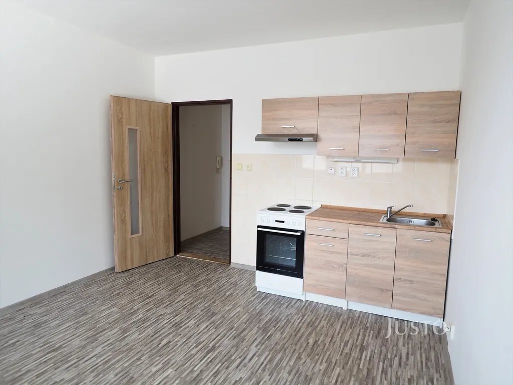 Dispozičně byt nabízí obytný prostor s kuchyňskou linkou a elektrickým sporákem a zděnou koupelnu.