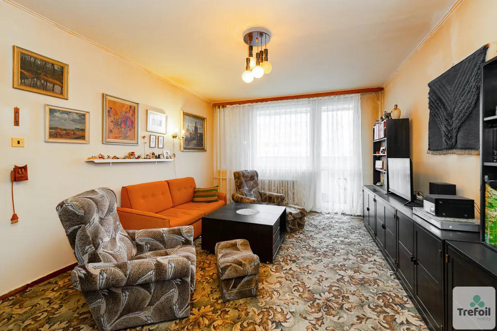 Dispozičně je byt velmi dobře řešený – z předsíně se vstupuje do koupelny, samostatného WC, ložnice, obývacího pokoje a dvou dalších pokojů. Kuchyně je přístupná z obývacího pokoje a navazuje na další samostatný pokoj, což nabízí mnoho možností uspořádání prostoru.
