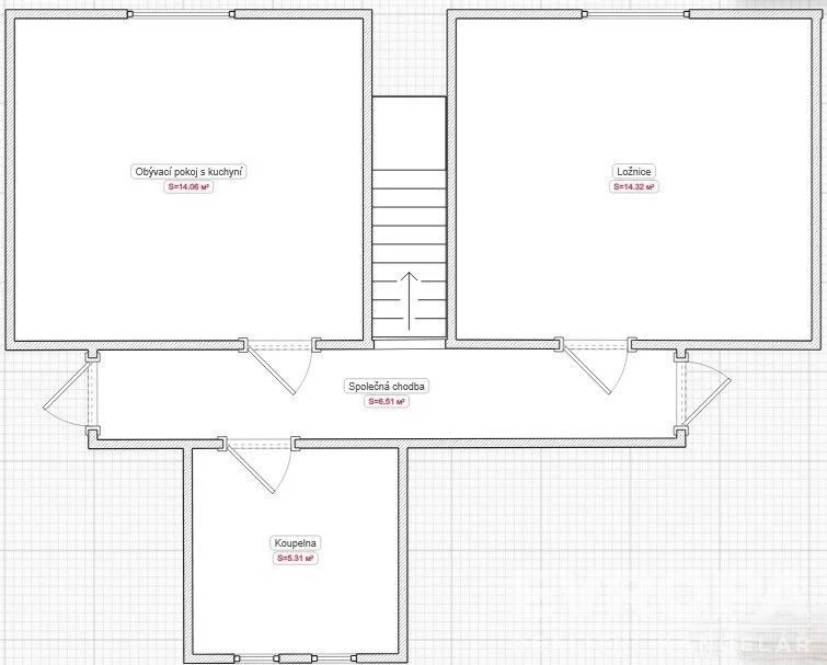 Prostor se skládá z ložnice, obývacího pokoje s kuchyní a koupelny a půdy. Pozor všechny místnosti jsou samostatně přístupné ze společné chodby domu.