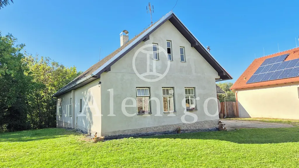 Nabízená nemovitost se skládá ze 3 na sebe navazujících pozemků o celkové výměře 2 823 m2, součástí pozemku je dům s obytnou a hospodářskou částí, samostatně stojící stodola a plechová garáž.