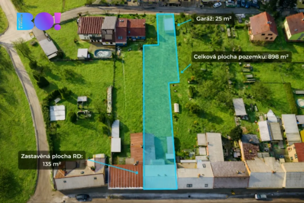 Dům má celkovou zastavěnou plochu 155 m² a ostatní pozemek včetně dvora o výměře 743 m², což poskytuje příjemný prostor pro zahradu nebo různé venkovní aktivity. Objekt je částečně podsklepený s možností dodatečných úložných možností. V zadní části zahrady se nachází garáž s příjezdem zezadu, což zajišťuje komfortní parkování a snadný přístup.
