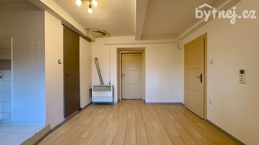Byt se nachází ve sníženém přízemí s výměrou 49 m². Sestává ze vstupní chodby, samostatnou WC, komorou a hlavní místnosti. Dále v kuchyni se spotřebiči (trouba, digestoř, varná deska).