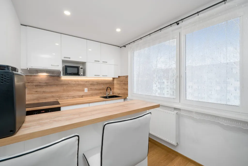 Bytová jednotka je v udržovaném stavu, kuchyně prošla rekonstrukcí, nabízí moderní řešení a dostatek úložného i pracovního prostoru. Dispozice 3+1 poskytuje pohodlné bydlení pro rodinu i jednotlivce, kteří hledají větší prostor.