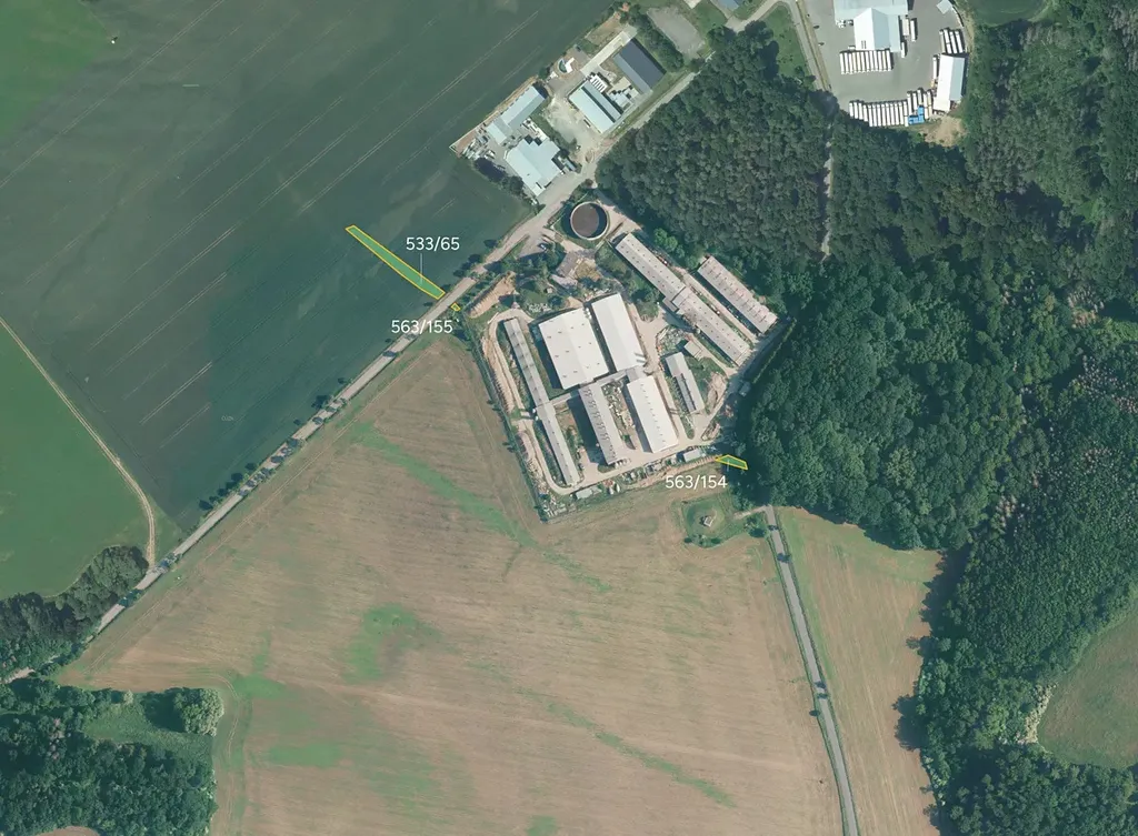 Jedná se o tyto parcely: 533/65, 536/8, 563/154, 563/155 a 597/87