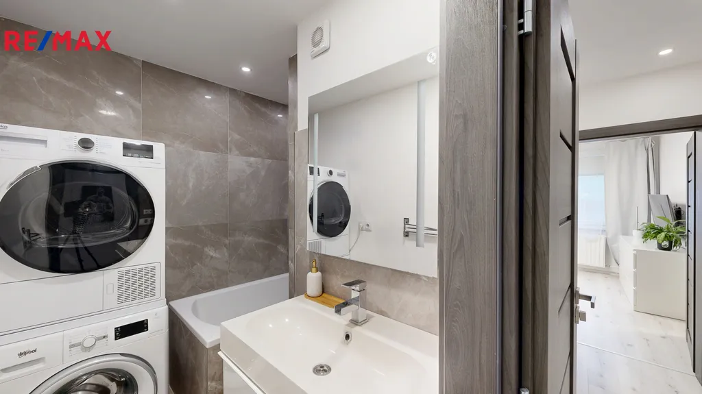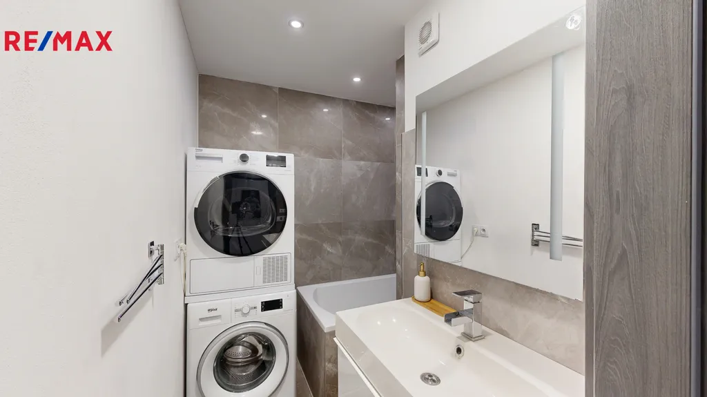 MHD je v blízkosti domu, je tak lehce dostupná doprava do centra Brna. V blízkosti se nachází veškerá občanská vybavenost (do 5 minut chůze od domu), před domem je dostatečně dimenzované parkoviště. Pokoje jsou vybaveny LED osvětlením. Chodba je vybavena nábytkem na míru k plnému využití místa, koupelna s pračkou a sušičkou. Byt může zůstat po dohodě téměř kompletně vybaven.