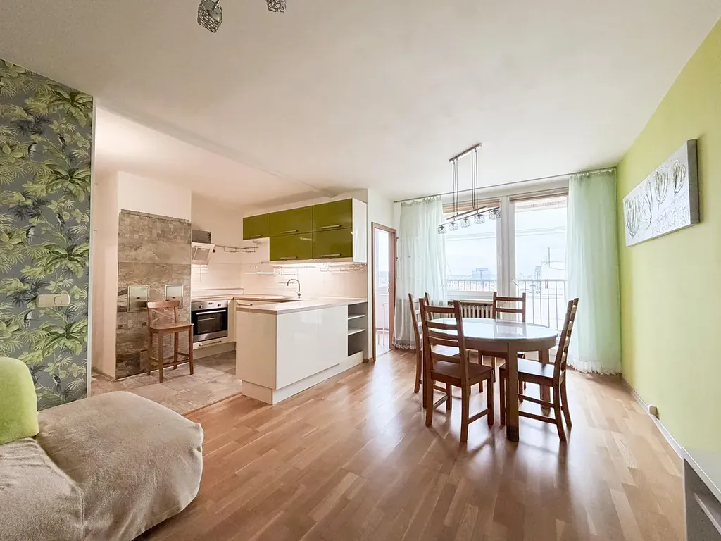 Nabízíme k pronájmu světlý a velmi prostorný byt 3+kk o celkové ploše 80,6 m², který se nachází ve 13. patře udržovaného domu s výtahem na adrese Dělnická 6, Praha 7. Součástí bytu je také lodžie 3,3 m² , která poskytuje krásný panoramatický výhled na Holešovice a centrum Prahy.