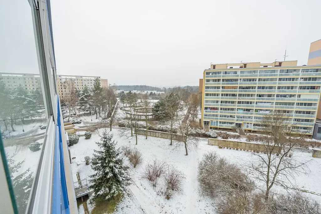 Jednotka je situována do 5. patra s výtahem. Okna mají orientaci na severozápad a jihovýchod do vzrostlé zeleně. Byt je v původním udržovaném stavu - jádro umakartové. Koupelna a záchod jsou zvlášť. Obývací pokoj je prostorný a má 20 m2, na něj navazuje původní kuchyň o 11m2. Chodba s předsíní je prostorná a ukrývá i vestavěné police a šikovnou šatnu. Byt má solidní a praktickou dispozici s dobře využitými prostory.
