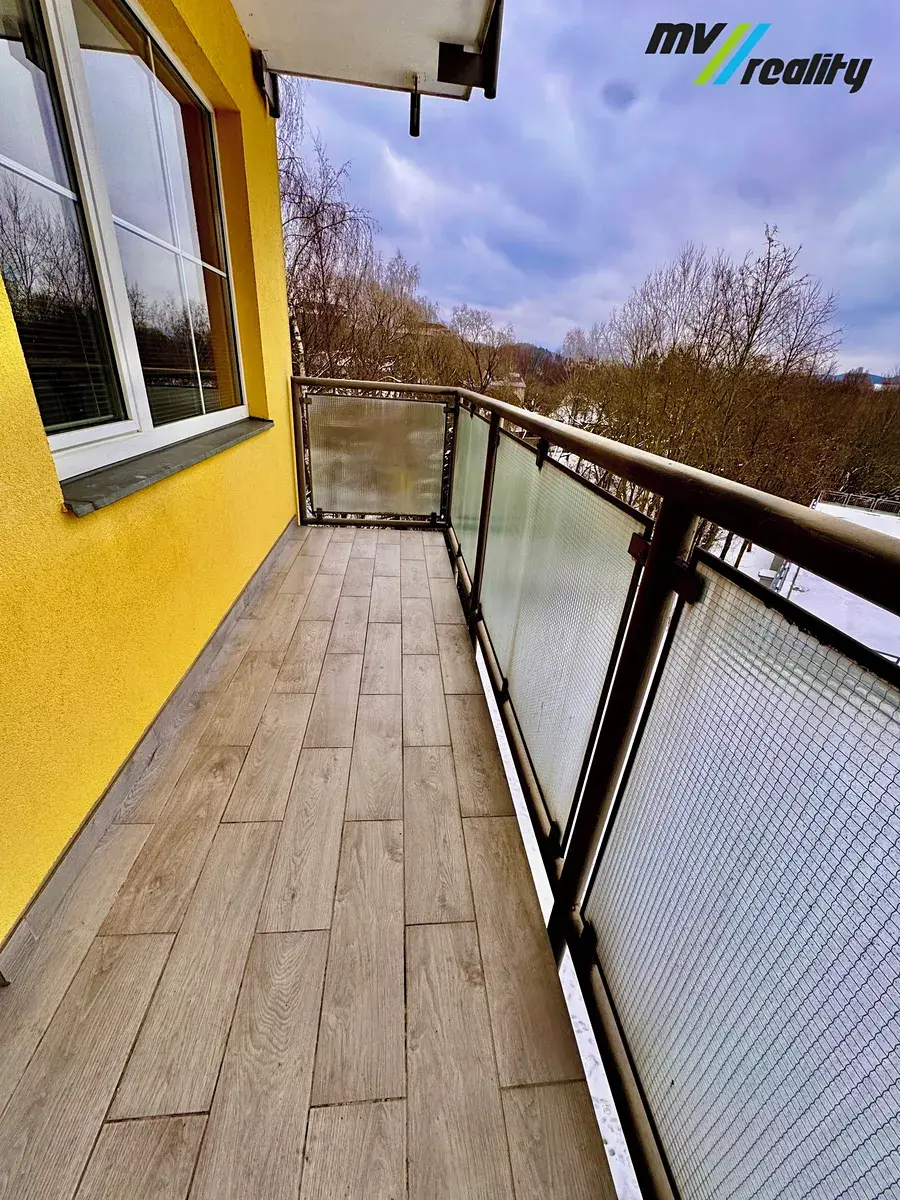 Z bytu je výhled do Zeleného údolí a díky poloze domu je vše na ,,dosah ruky" - škola, školka, pošta, úřad, obchody, autobusová zastávka, restaurace a mnoho dalšího. U domu je dostatek parkovacích míst pro pohodlné parkování.