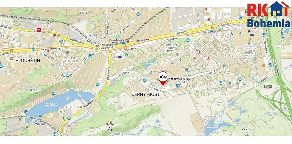 V těsné blízkosti domu se nachází veškerá občanská vybavenost (mateřské školky, základní škola, střední škola, ZUŠ, obchody, restaurace, poliklinika s pohotovostí, supermarket, obchodní centrum Westfield Černý Most atd.).