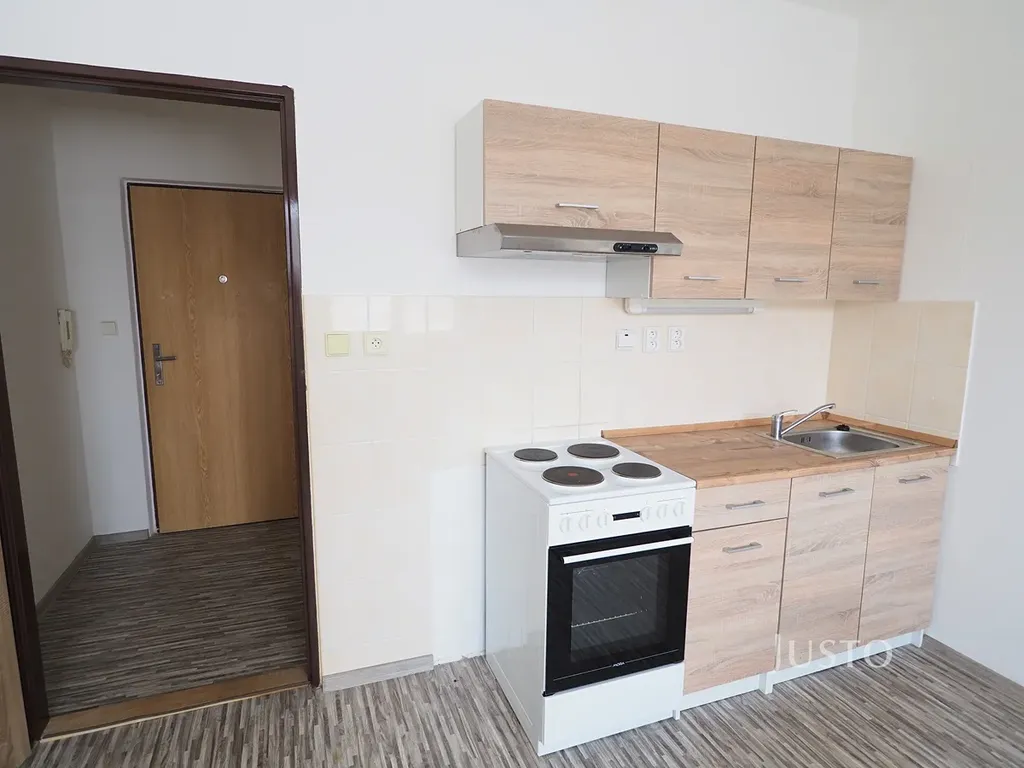 Dispozičně byt nabízí obytný prostor s kuchyňskou linkou a elektrickým sporákem a zděnou koupelnu.