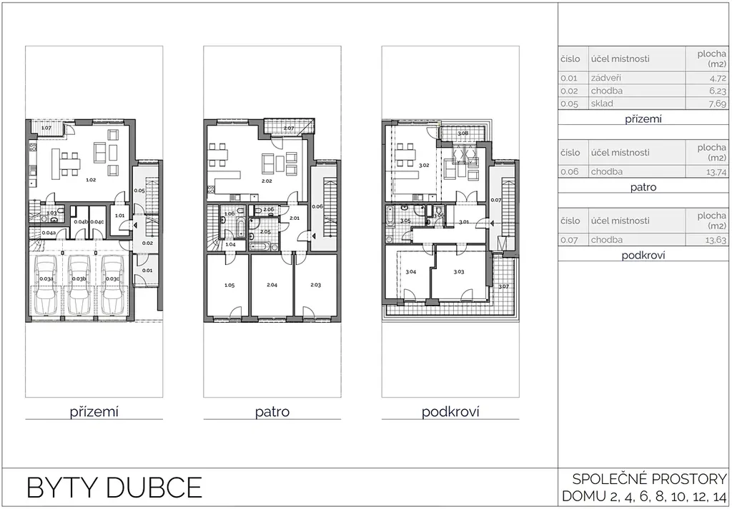K bytu samozřejmě náleží i velkorysé garážové stání a samostatný zděný sklep. V areálu je i dostatek venkovních parkovacích míst pro návštěvy.