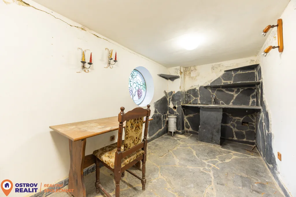 V přízemí se nachází také menší sklípek, který poslouží jako příjemná vinárna nebo útulné místo pro posezení.